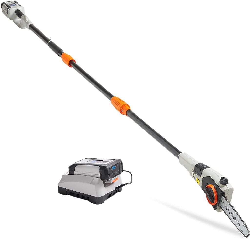 If you’re looking for the best pole saw for the money, you might want to look into the Oregon Cordless PS250. It’s part of Oregon’s 40V Max Cordless Tool system as well, so if you own any others in the line, you’ll be able to purchase just the base toll and hot swap the battery. And if you end using the 6.0 Ah battery, it will last you a stupid long time between charges.