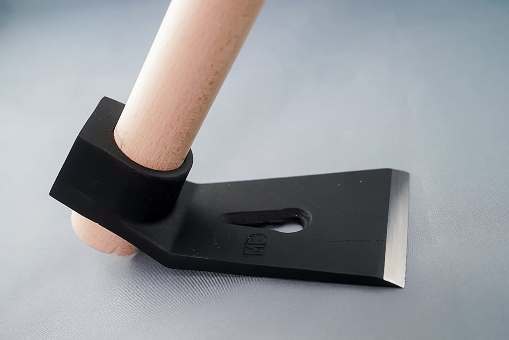 The adze is an ancient cutting tool shaped like an ax with the blade perpendicular to the handle. It is been used since the Stone Age and comes in two styles. A shorter design is for smoothing and carving wood, while the other is longer and used for agriculture and horticulture.